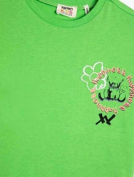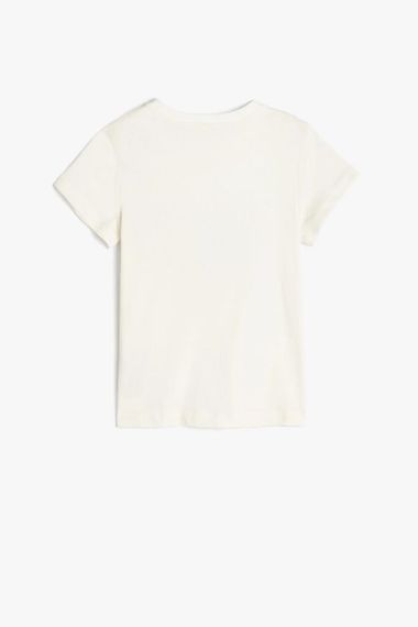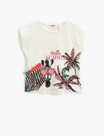 HİPATU تي شيرت Koton بناتي قصير بأكمام قصيرة مطبوع برقبة دائرية