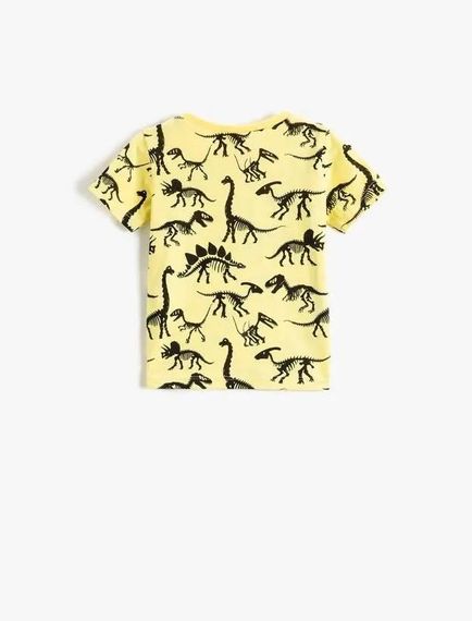 HİPATU Koton Erkek Bebek Dinozorlu Tişört Kısa Kollu Bisiklet Yaka Pamuklu