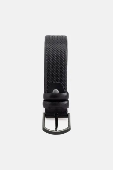 VARETTA GİYİM Varetta Erkek Siyah Çapraz Desen Deri Kemer