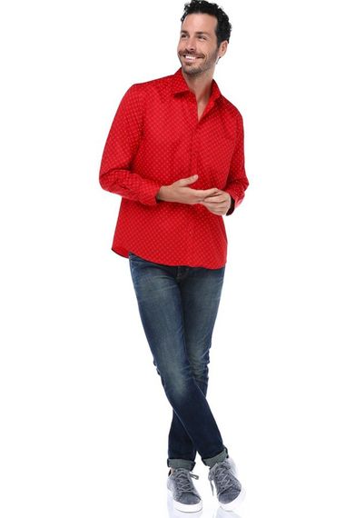 VARETTA GİYİM Erkek Deniz Mavisi Uzun Kol Mini Desen Slim Fit Erkek Gömlek