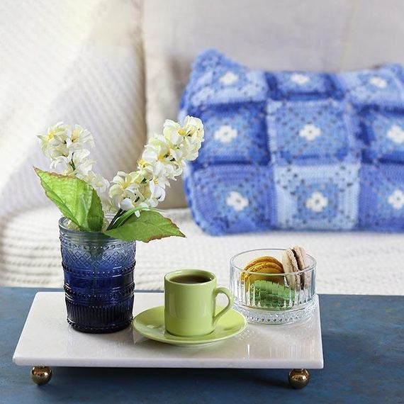 AKAYEV Akayev Mermer Beyaz 25 Cm Boncuk Ayak Gold Elysia 4'lü Reçellik İkramlık