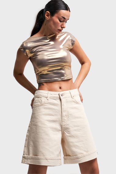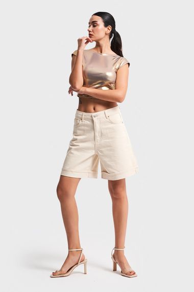 İTS BASİC Kadın Raw Renk Midi Boy Yüksek Bel Jean Şort
