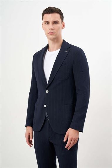Morven Morven Erkek Lacivert Santorin Ceremonia Jakarlı Slim Fit Dar Kesim Damatlık