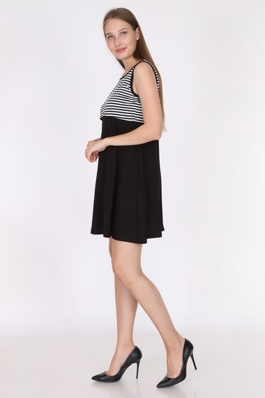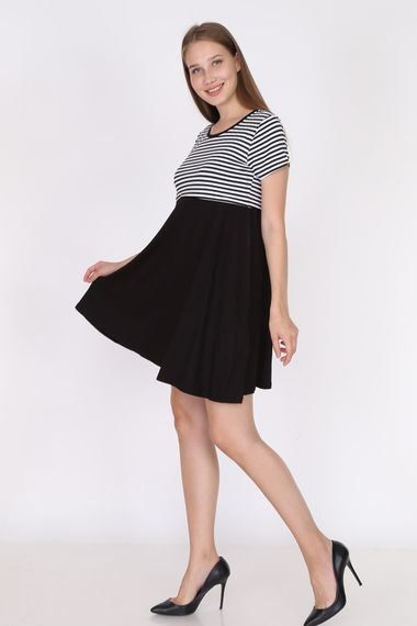 LUVMA BELLY Luvmabelly 5851 - Navy Blue Striped Bottom Black Half Sleeve Breastfeeding Dress