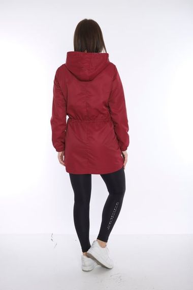 ESCETİC Escetic Women's Burgundy Windbreaker Fixed Hooded Patterned Lined Water Repellent Seasonal Thin Jacket 6562