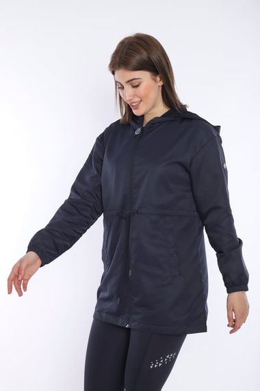 ESCETİC Escetic Women's Navy Blue Mesh Lined Pocket Hooded Sports Windbreaker Raincoat Thin Jacket 6723