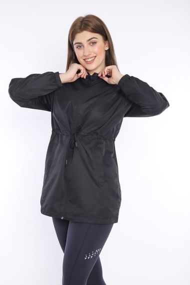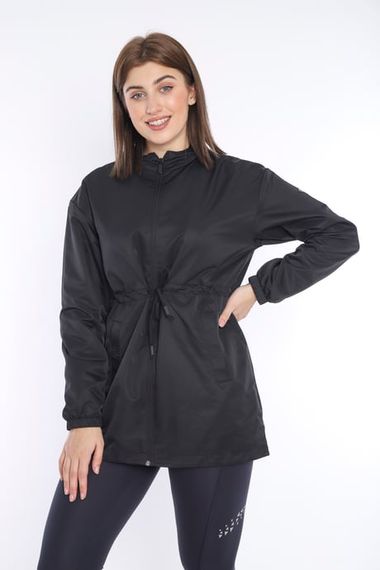 ESCETİC Escetic Women's Black Mesh Lined Pocket Hooded Sports Windbreaker Raincoat Thin Jacket 6723