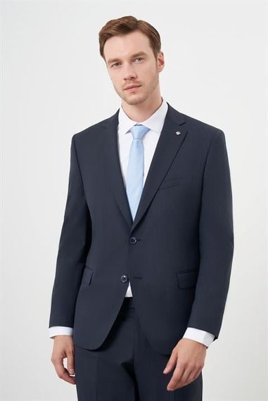 Morven Morven Erkek A. MAVİ Poliviskon Trend Çizgili Desen Slim Fit Mono Yaka Takım Elbise