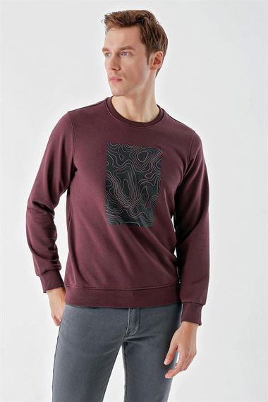 ESCETİC Escetic Bordo Erkek Kışlık Slimfit 3 İplik İçi Polarlı Nefes Alabilen Spor Sweatshirt 0940