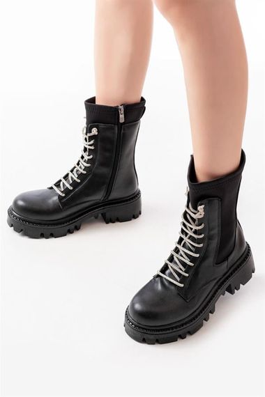 • 868-356 Siyah Rugan Bağcıklı Fermuarlı Günlük Kadın Bot