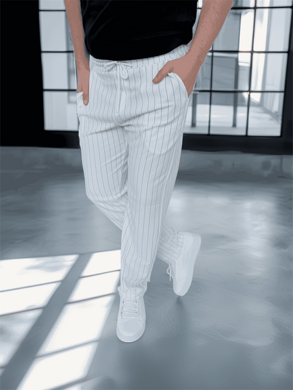 Viskon Dikey Çizgili Rahat Kalıp Erkek Gömlek - Beyaz