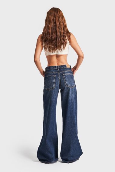 • Kadın Kot Rengi 4S527 Süper Palazzo Fit Bağcıklı %100 Koton Denim