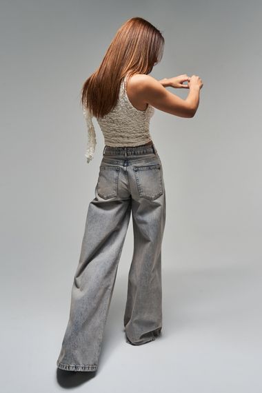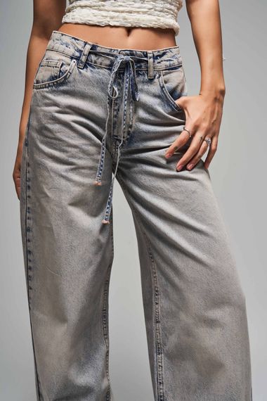 Kadın Kot Rengi 4S527 Süper Palazzo Fit Bağcıklı %100 Koton Denim