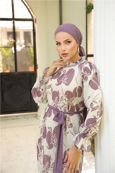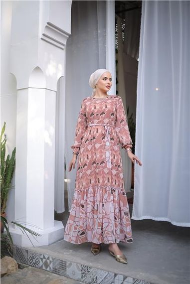 Ця елегантна шифонова сукня для жінок має витончений дизайн, створений для того, щоб підкреслити фігуру. Вишуканий принт разом із зав'язкою на талї робить її ідеальним вибором для будь-якої події. Легкий матеріал забезпечує комфорт, дозволяючи шкірі дихати. Сукня підходить для сезону, тож ви можете з задоволенням носити її в будь-яку пору року.